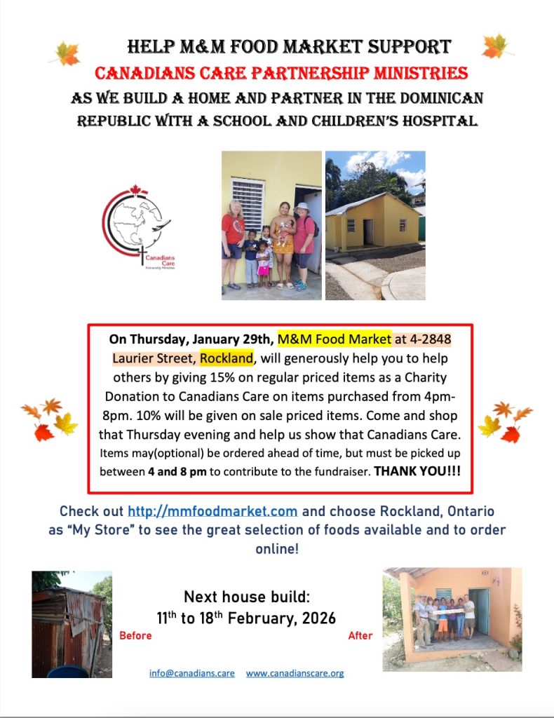 By FredJanuary 11, 2026 Join us Thursday, January 29th at M&M Food Market! 4-2848 Laurier Street Rockland